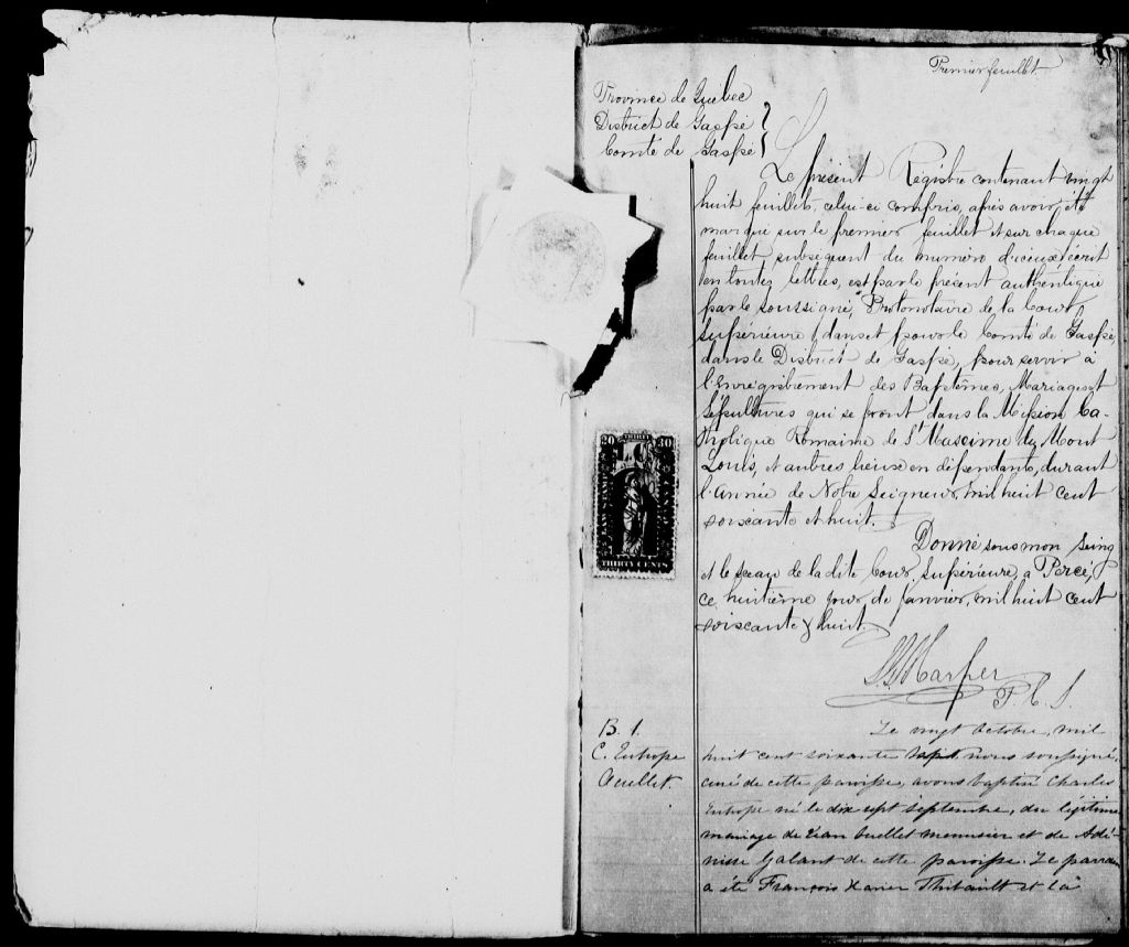 Saint-Antoine-de-Gros-Morne, 1867-1899, Archives nationales à Rimouski, Fonds Cour supérieure. District judiciaire de Gaspé. État civil, (01R,CE102,S18).