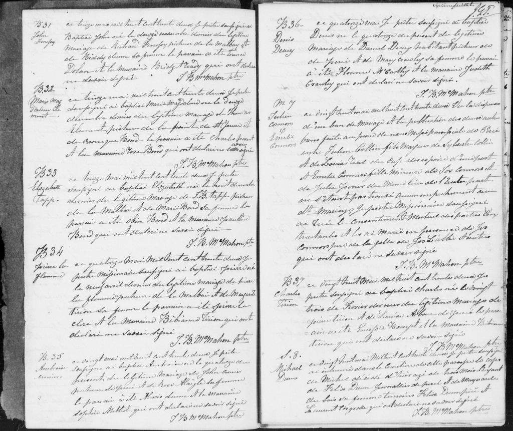 Saint-Michel-de-Percé, 1801-1921, Archives nationales à Rimouski, Fonds Cour supérieure. District judiciaire de Gaspé. État civil, (01R,CE102,S19).