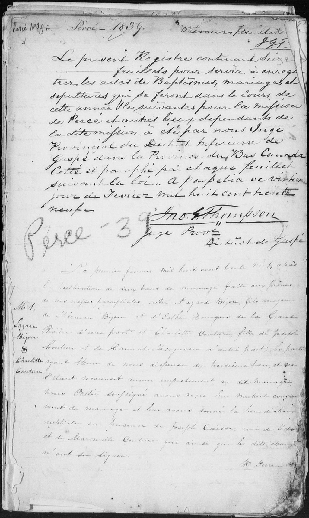 Saint-Michel-de-Percé, 1801-1921, Archives nationales à Rimouski, Fonds Cour supérieure. District judiciaire de Gaspé. État civil, (01R,CE102,S19).