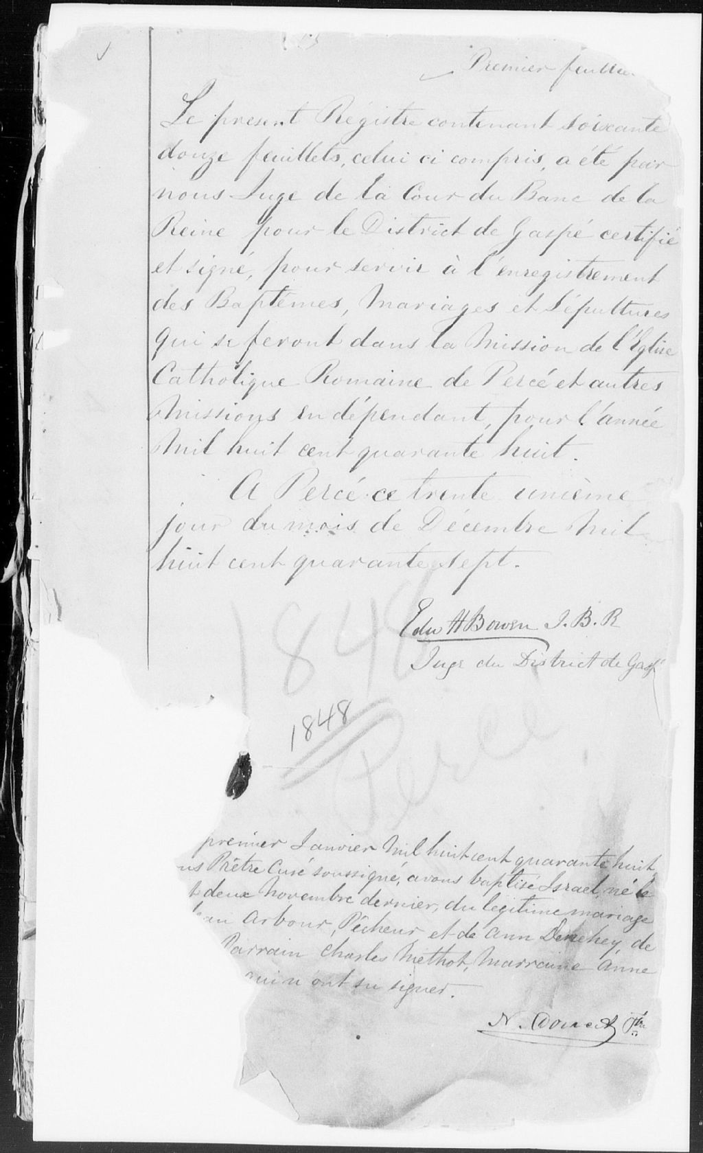 Saint-Michel-de-Percé, 1801-1921, Archives nationales à Rimouski, Fonds Cour supérieure. District judiciaire de Gaspé. État civil, (01R,CE102,S19).