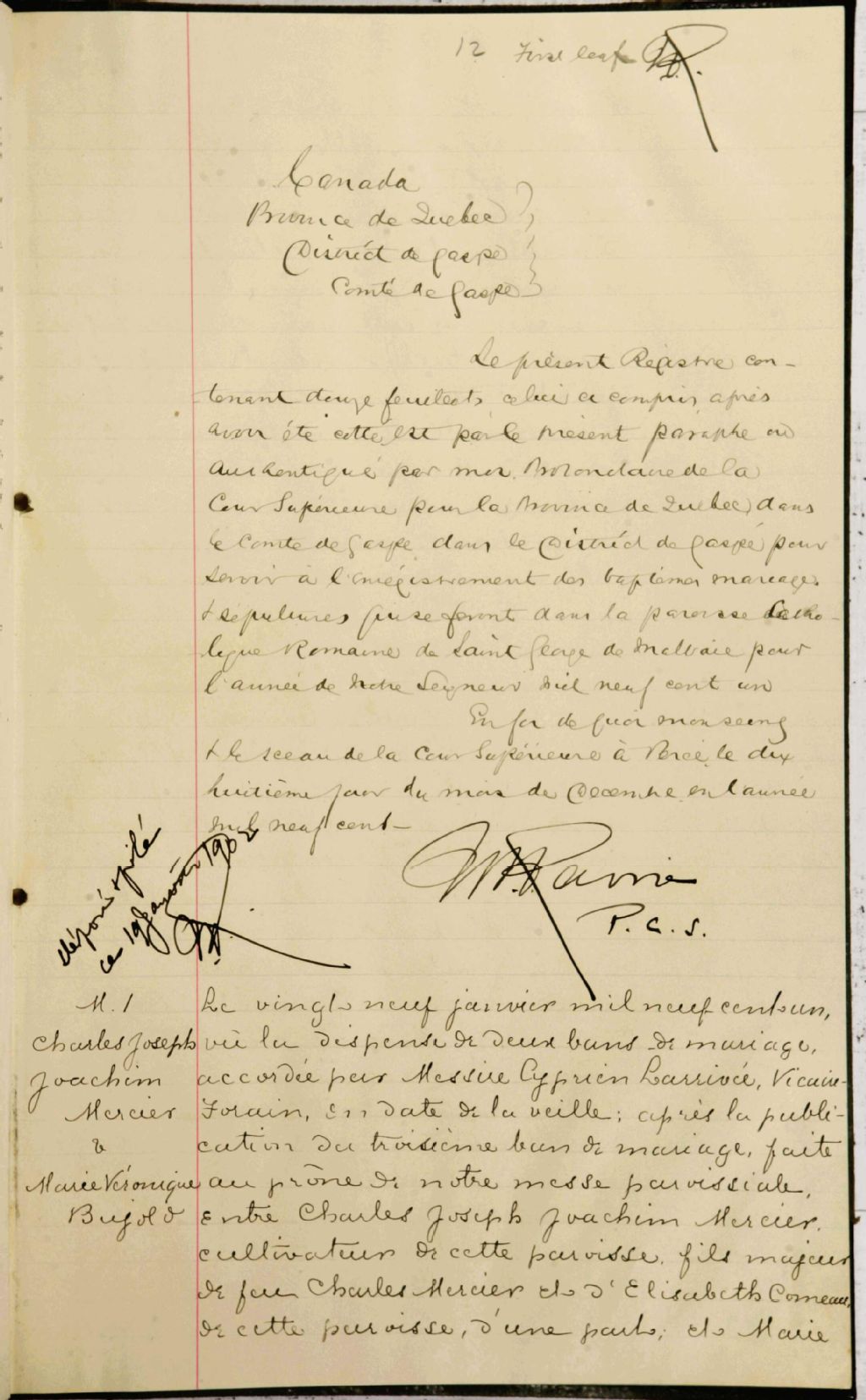 Saint-Georges-de-Malbaie, 1871-1921, Archives nationales à Rimouski, Fonds Cour supérieure. District judiciaire de Gaspé. État civil, (01R,CE102,S20).