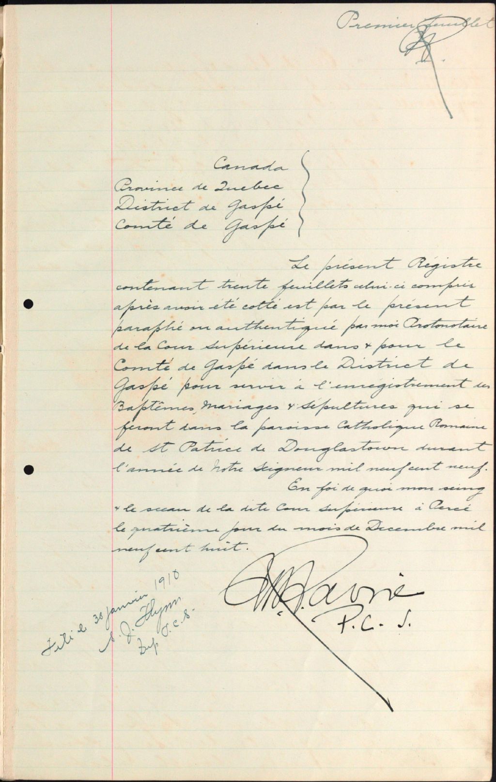 Saint-Patrick-de-Douglastown, 1845-1921, Archives nationales à Rimouski, Fonds Cour supérieure. District judiciaire de Gaspé. État civil, (01R,CE102,S22).