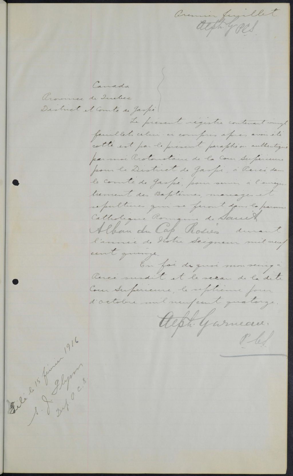 Saint-Alban-de-Cap-des-Rosiers, 1872-1921, Archives nationales à Rimouski, Fonds Cour supérieure. District judiciaire de Gaspé. État civil, (01R,CE102,S23).