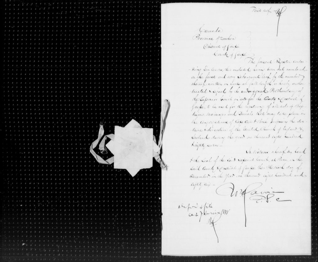 Protestant Episcopal, Percé and Cape Cove, 1824-1921, Archives nationales à Rimouski, Fonds Cour supérieure. District judiciaire de Gaspé. État civil, (01R,CE102,S28).