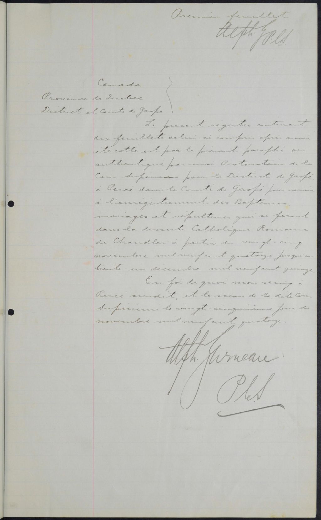Saint-Coeur-de-Marie, 1915-1921, Archives nationales à Rimouski, Fonds Cour supérieure. District judiciaire de Gaspé. État civil, (01R,CE102,S30).
