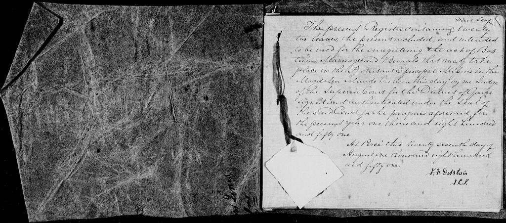 Grosse-Ile Anglican Church, 1851-1921, Archives nationales à Rimouski, Fonds Cour supérieure. District judiciaire de Gaspé. État civil, (01R,CE102,S5).