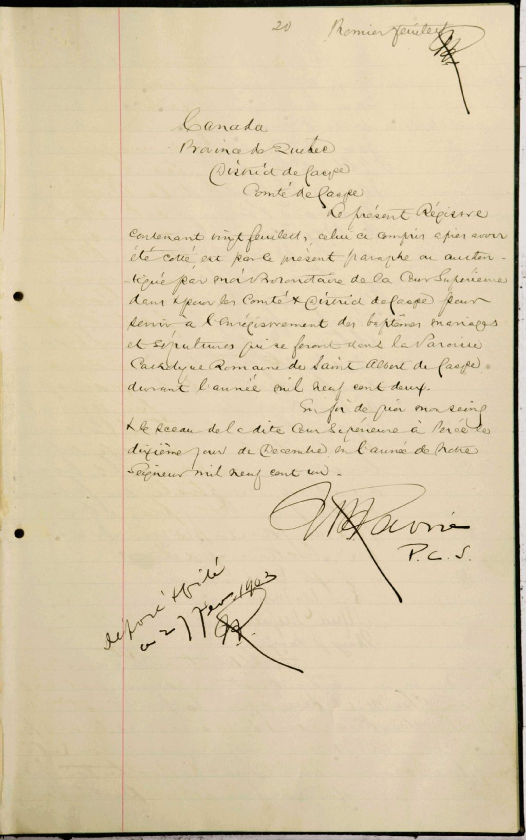 Saint-Albert-le-Grand, 1869-1921, Archives nationales à Rimouski, Fonds Cour supérieure. District judiciaire de Gaspé. État civil, (01R,CE102,S7).