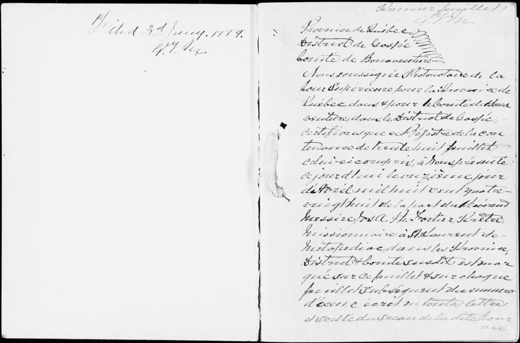 Saint-Laurent-de-Matapédia, 1888-1921, Archives nationales à Rimouski, Fonds Cour supérieure. District judiciaire de Bonaventure. État civil, (01R,CE103,S11).