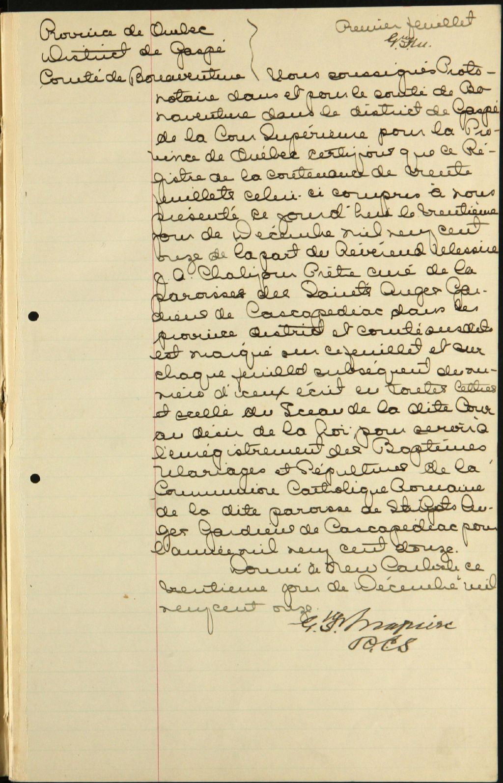 Notre-Dame-des-Saints-Anges, 1831-1921, Archives nationales à Rimouski, Fonds Cour supérieure. District judiciaire de Bonaventure. État civil, (01R,CE103,S1).