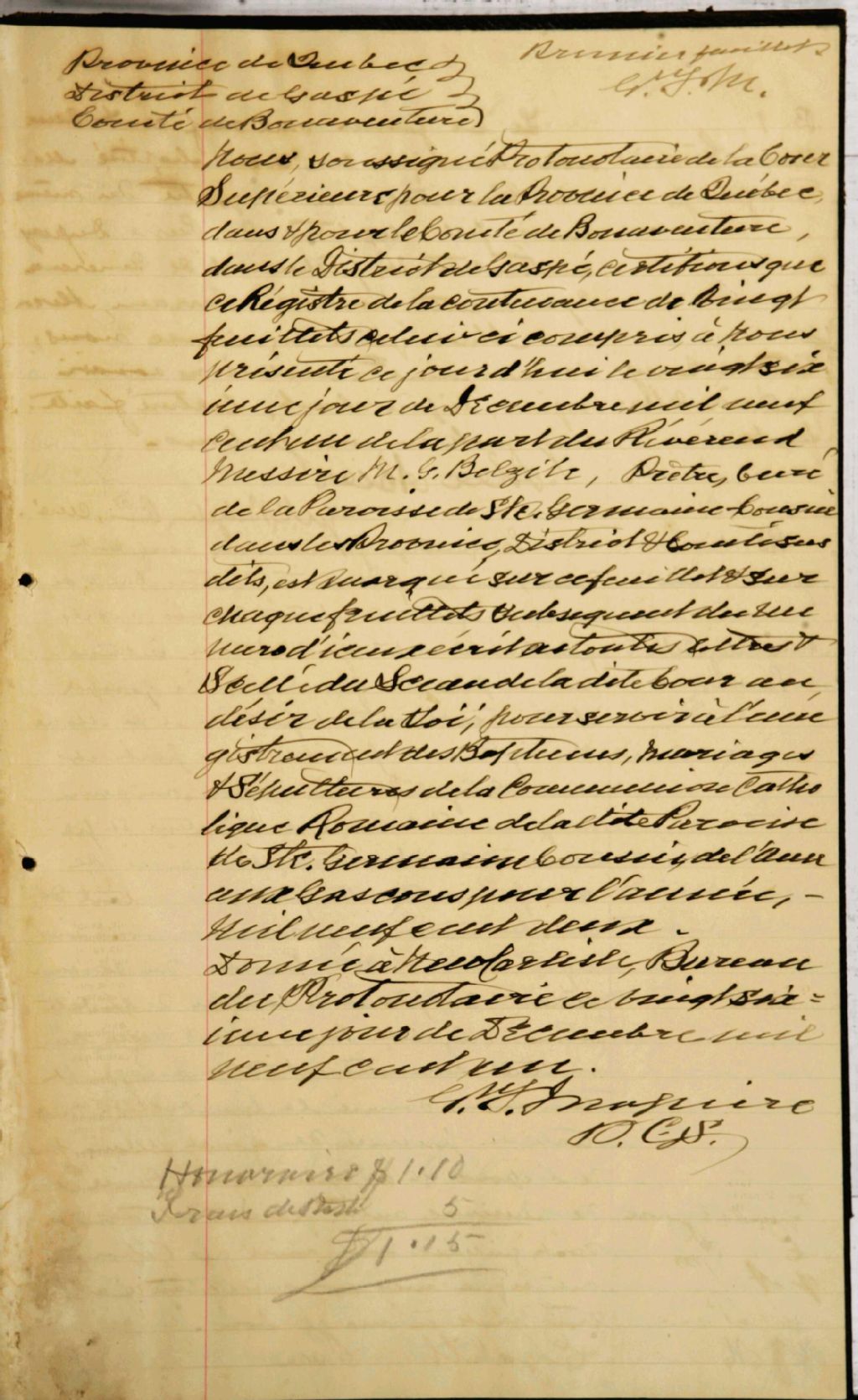Sainte-Germaine-Cousin, 1898-1921, Archives nationales à Rimouski, Fonds Cour supérieure. District judiciaire de Bonaventure. État civil, (01R,CE103,S2).