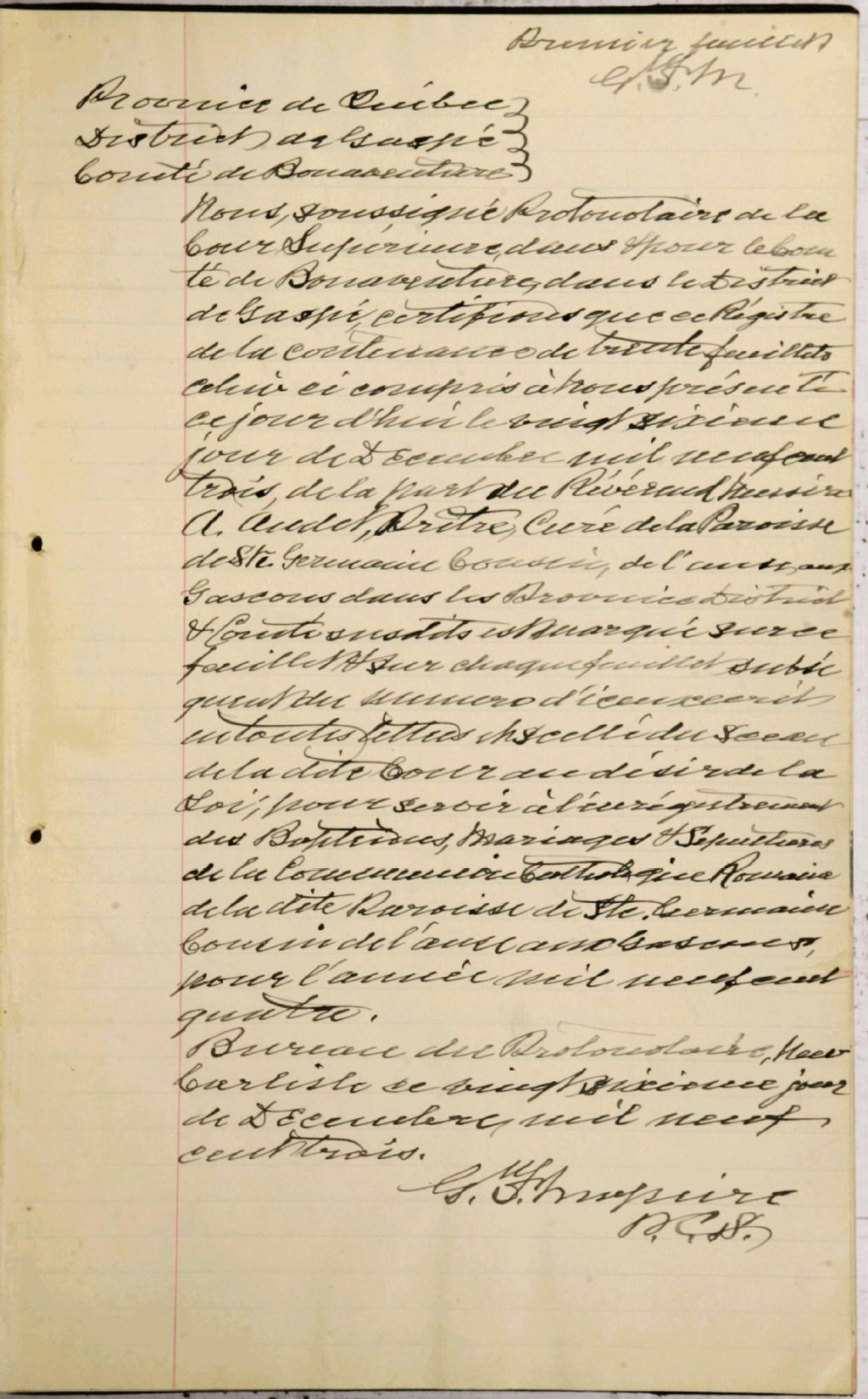 Sainte-Germaine-Cousin, 1898-1921, Archives nationales à Rimouski, Fonds Cour supérieure. District judiciaire de Bonaventure. État civil, (01R,CE103,S2).