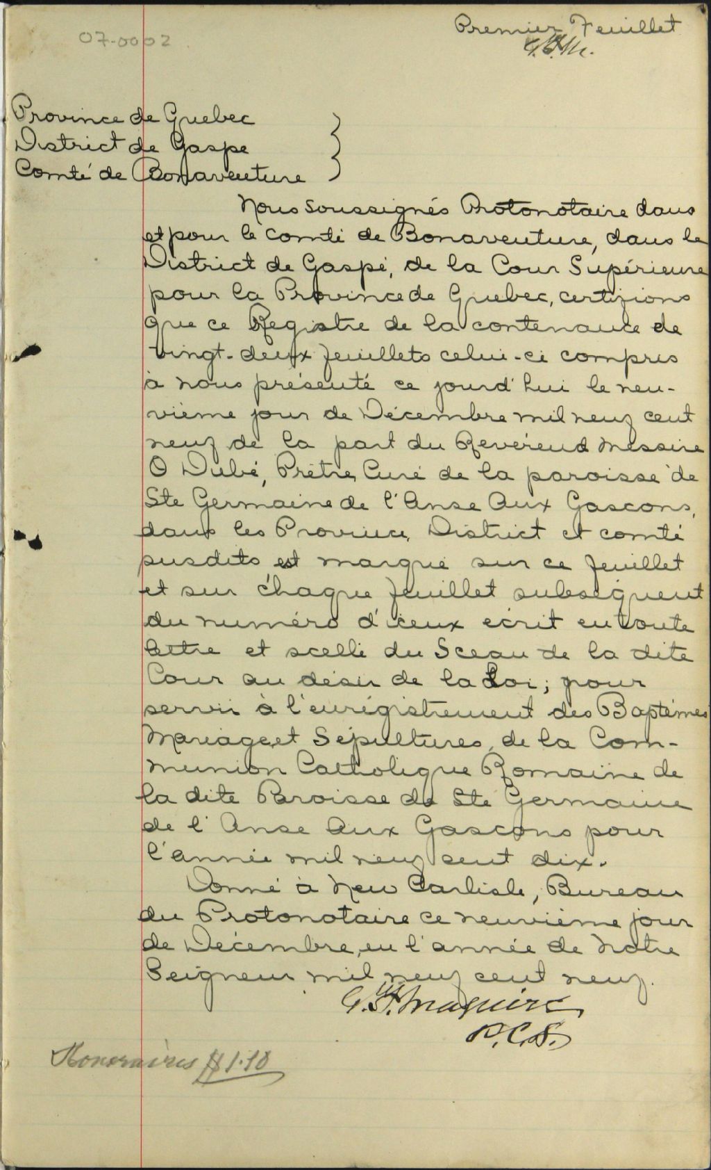 Sainte-Germaine-Cousin, 1898-1921, Archives nationales à Rimouski, Fonds Cour supérieure. District judiciaire de Bonaventure. État civil, (01R,CE103,S2).