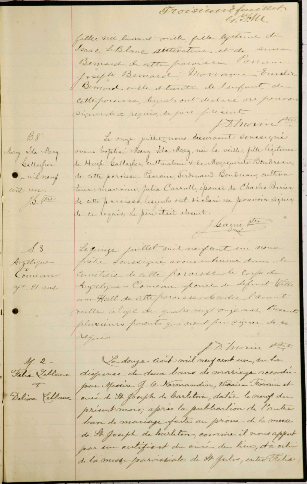 Saint-Jules, 1901-1921, Archives nationales à Rimouski, Fonds Cour supérieure. District judiciaire de Bonaventure. État civil, (01R,CE103,S23).