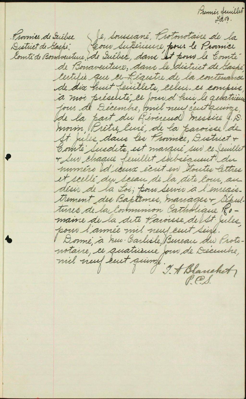 Saint-Jules, 1901-1921, Archives nationales à Rimouski, Fonds Cour supérieure. District judiciaire de Bonaventure. État civil, (01R,CE103,S23).