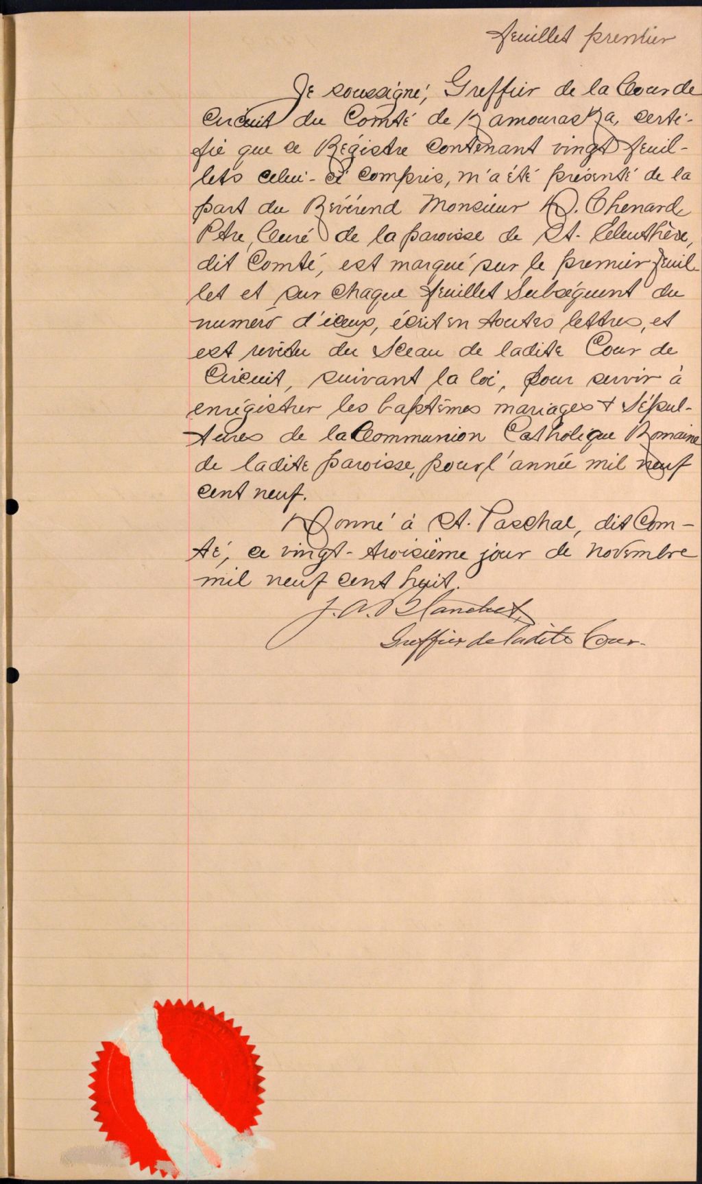 Saint-Eleuthère, 1874-1921, Archives nationales à Rimouski, Fonds Cour supérieure. District judiciaire de Kamouraska. État civil, (01R,CE104,S17).