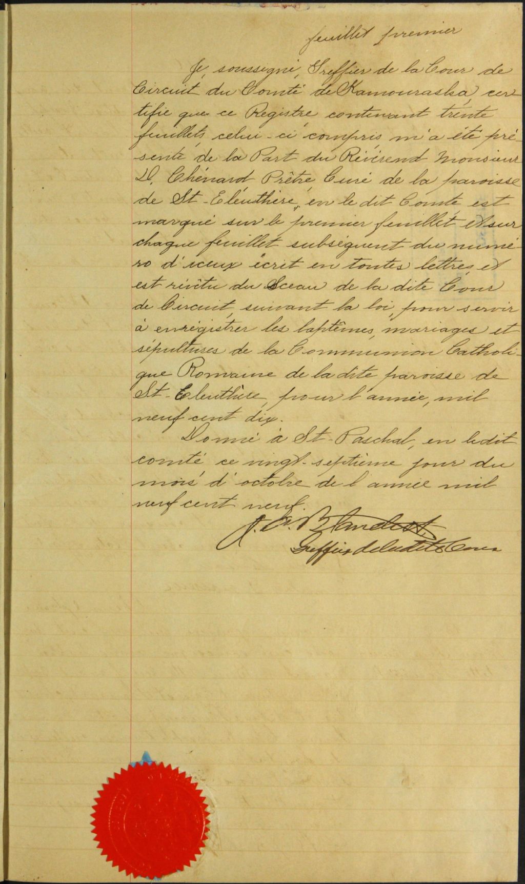 Saint-Eleuthère, 1874-1921, Archives nationales à Rimouski, Fonds Cour supérieure. District judiciaire de Kamouraska. État civil, (01R,CE104,S17).