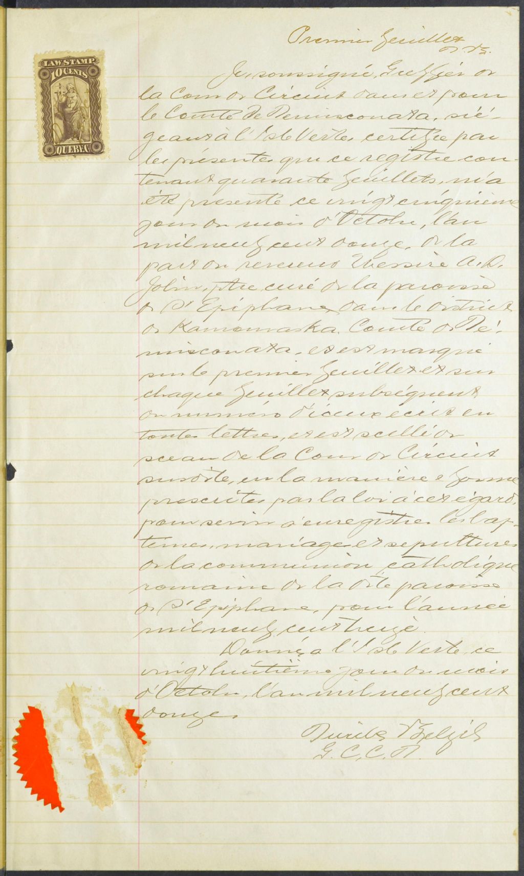 Saint-Épiphane, 1863-1921, Archives nationales à Rimouski, Fonds Cour supérieure. District judiciaire de Kamouraska. État civil, (01R,CE104,S19).