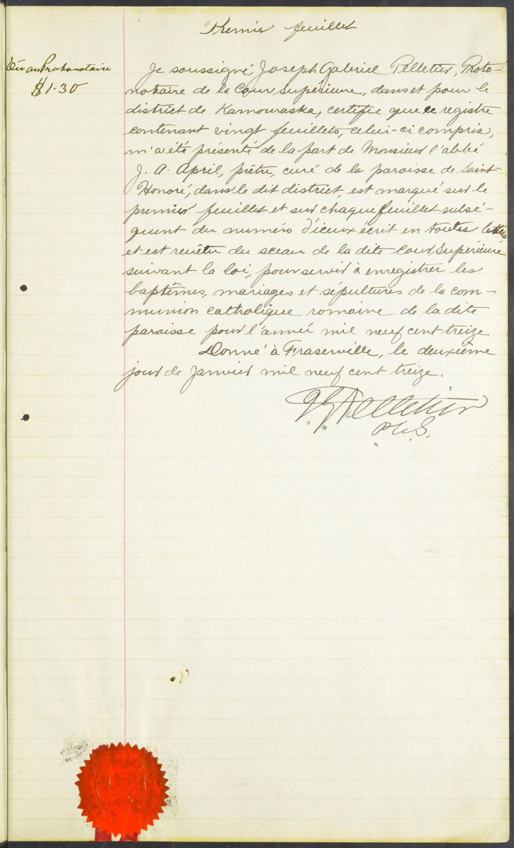 Saint-Honoré, 1871-1921, Archives nationales à Rimouski, Fonds Cour supérieure. District judiciaire de Kamouraska. État civil, (01R,CE104,S23).