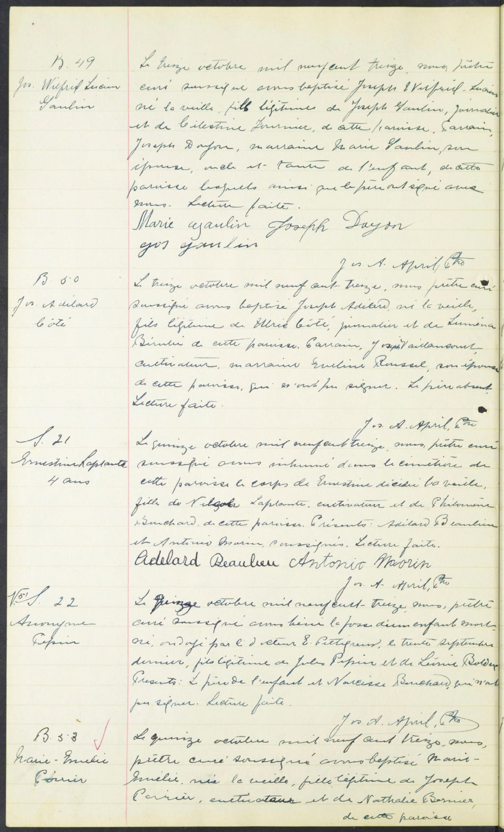 Saint-Honoré, 1871-1921, Archives nationales à Rimouski, Fonds Cour supérieure. District judiciaire de Kamouraska. État civil, (01R,CE104,S23).