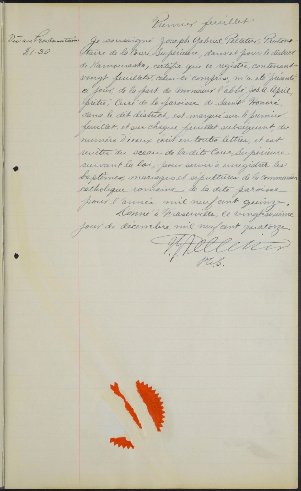 Saint-Honoré, 1871-1921, Archives nationales à Rimouski, Fonds Cour supérieure. District judiciaire de Kamouraska. État civil, (01R,CE104,S23).