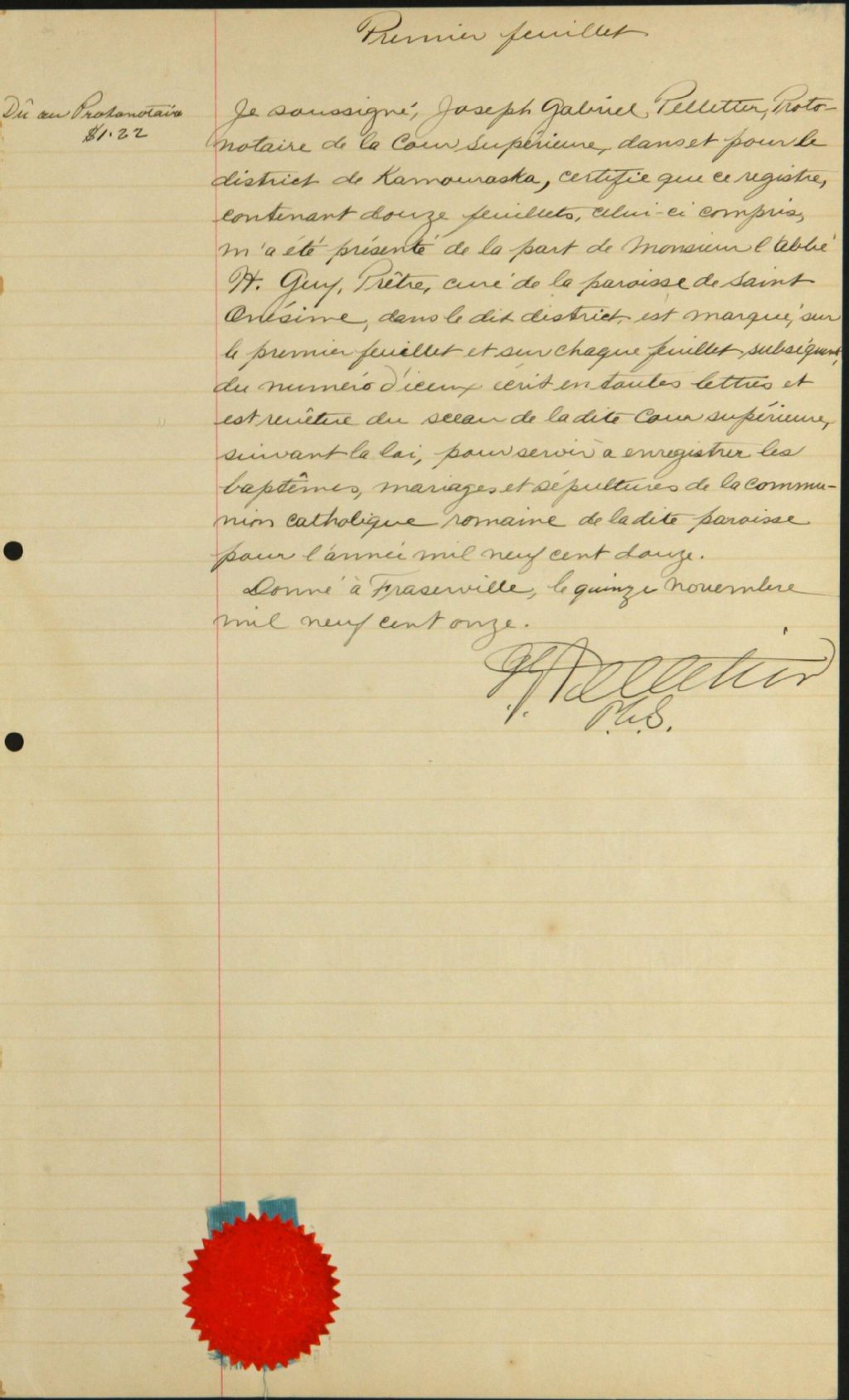 Saint-Onésime-d'Ixworth, 1864-1921, Archives nationales à Rimouski, Fonds Cour supérieure. District judiciaire de Kamouraska. État civil, (01R,CE104,S26).