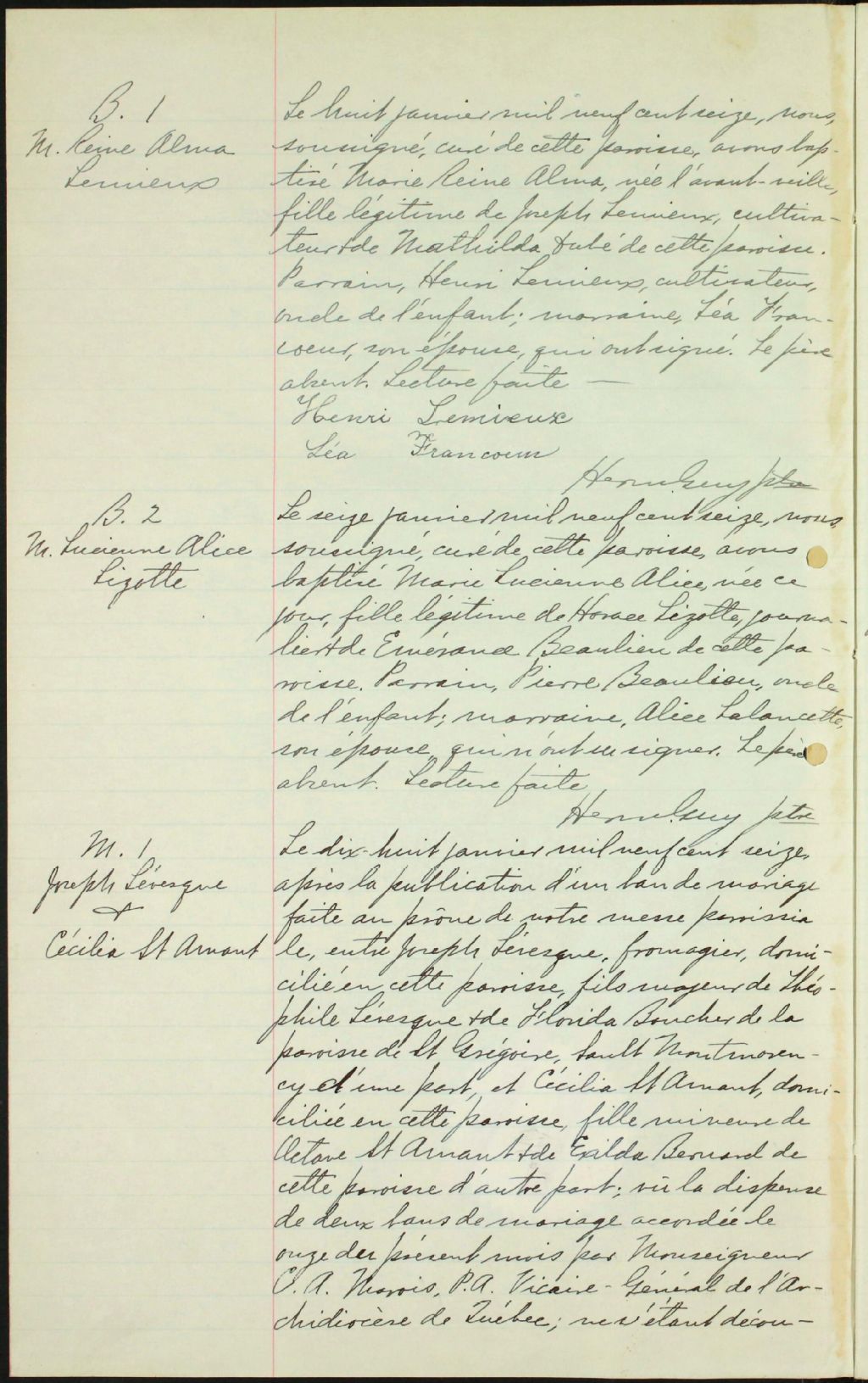 Saint-Onésime-d'Ixworth, 1864-1921, Archives nationales à Rimouski, Fonds Cour supérieure. District judiciaire de Kamouraska. État civil, (01R,CE104,S26).