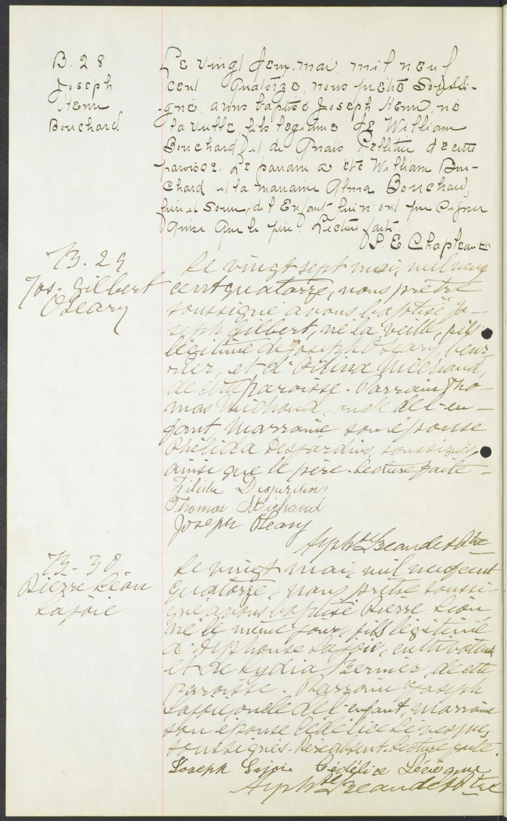 Saint-Pascal, 1829-1921, Archives nationales à Rimouski, Fonds Cour supérieure. District judiciaire de Kamouraska. État civil, (01R,CE104,S29).