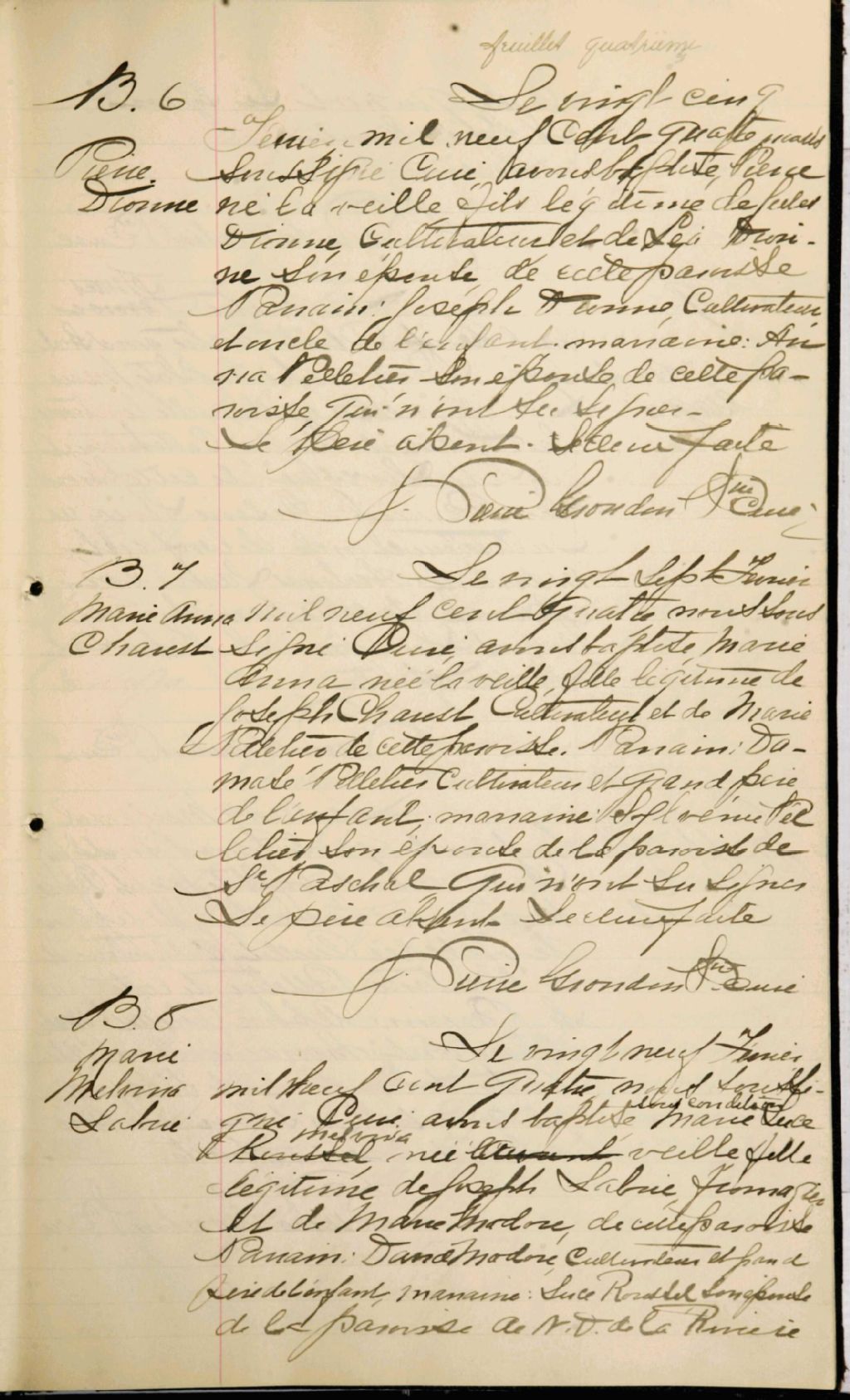 Saint-Bruno, 1893-1921, Archives nationales à Rimouski, Fonds Cour supérieure. District judiciaire de Kamouraska. État civil, (01R,CE104,S37).