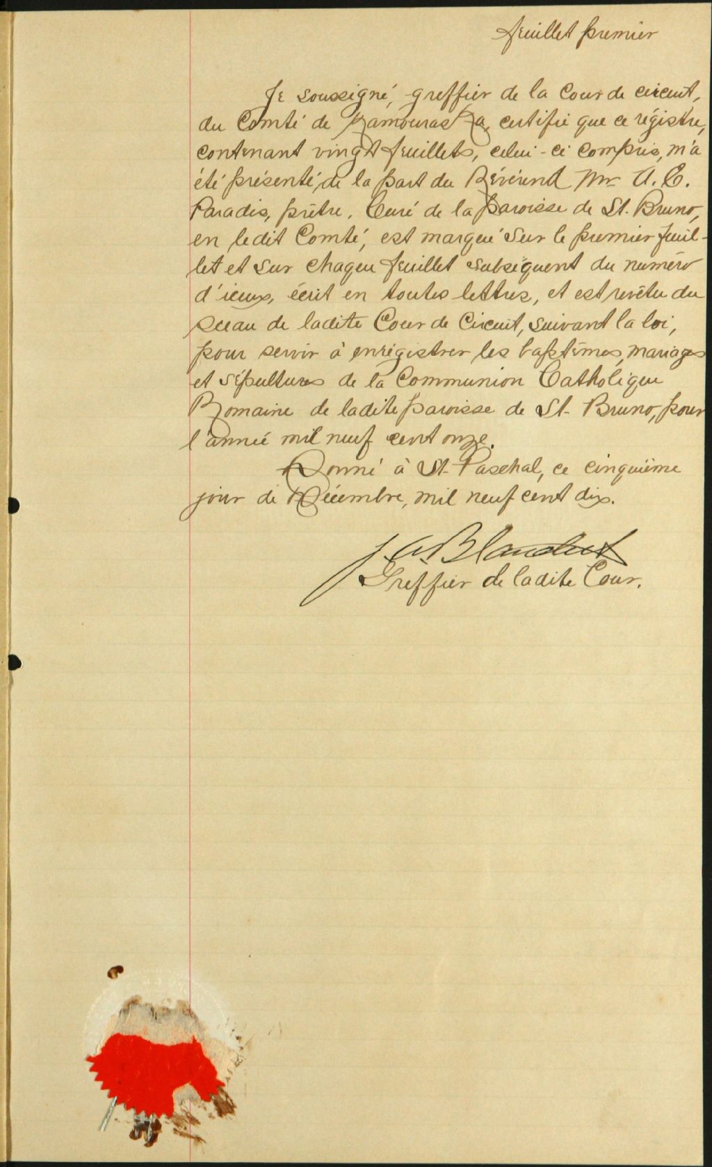 Saint-Bruno, 1893-1921, Archives nationales à Rimouski, Fonds Cour supérieure. District judiciaire de Kamouraska. État civil, (01R,CE104,S37).