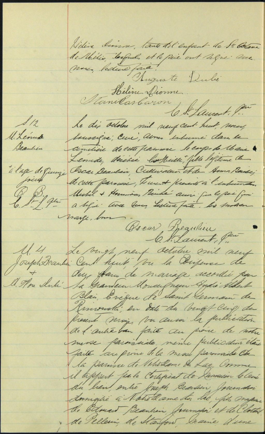 Saint-Eusèbe, 1887-1888; 1901-1921, Archives nationales à Rimouski, Fonds Cour supérieure. District judiciaire de Kamouraska. État civil, (01R,CE104,S39).