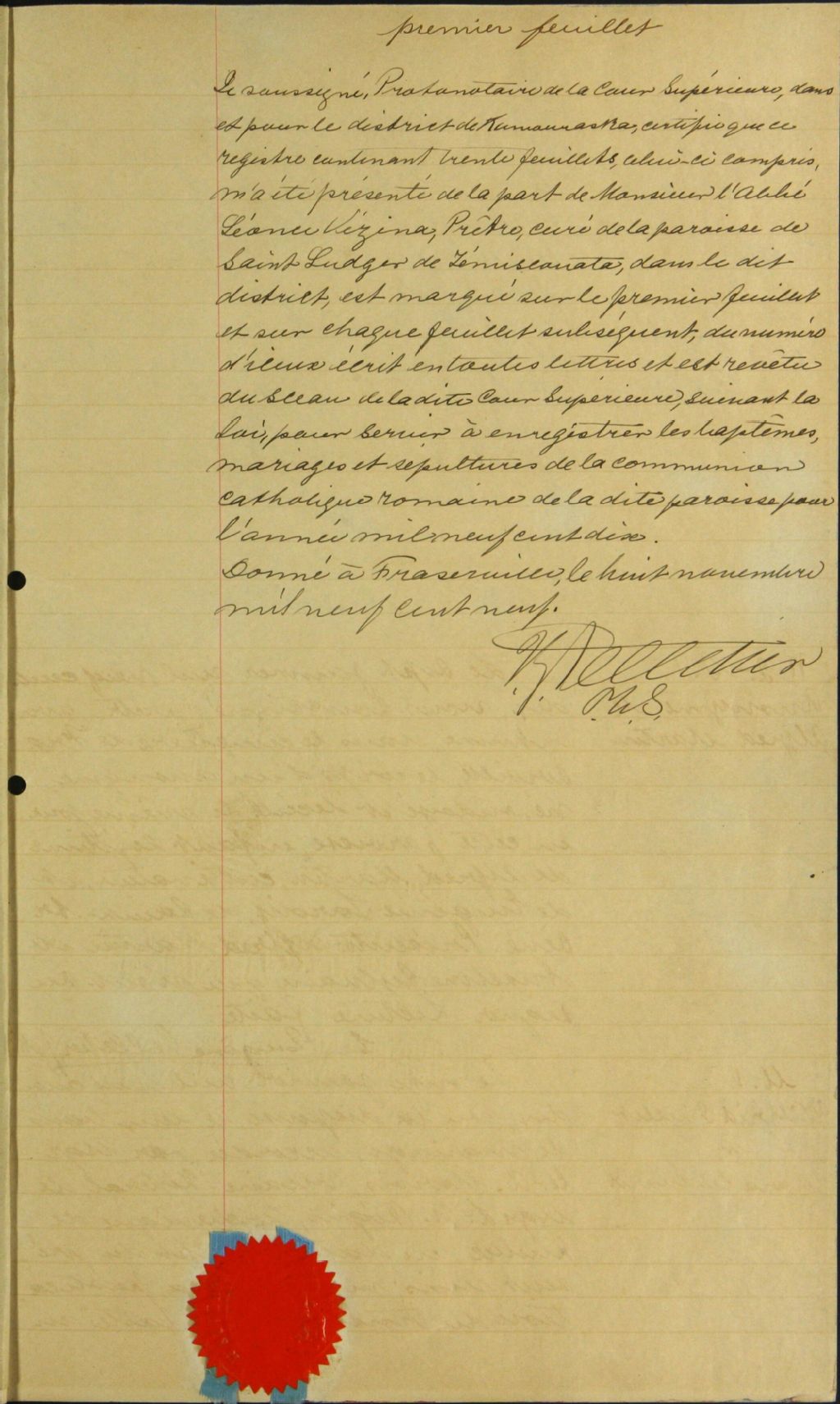Saint-Ludger, 1906-1921, Archives nationales à Rimouski, Fonds Cour supérieure. District judiciaire de Kamouraska. État civil, (01R,CE104,S43).