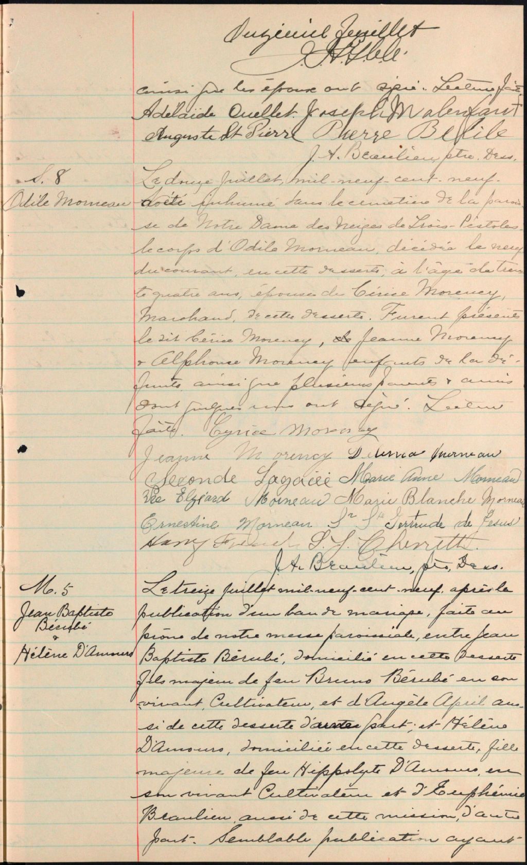 Saint-Jean-Baptiste de la Rivière Trois-Pistoles, 1908-1921, Archives nationales à Rimouski, Fonds Cour supérieure. District judiciaire de Kamouraska. État civil, (01R,CE104,S46).