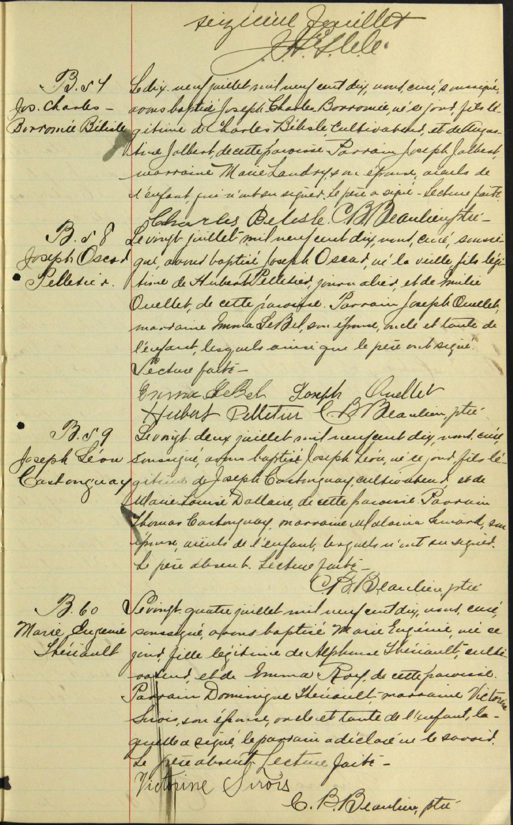 Saint-Hubert, 1886-1921, Archives nationales à Rimouski, Fonds Cour supérieure. District judiciaire de Kamouraska. État civil, (01R,CE104,S5).