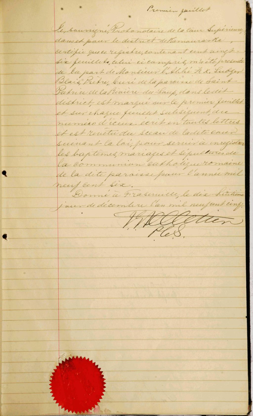 Saint-Patrice, 1813-1921, Archives nationales à Rimouski, Fonds Cour supérieure. District judiciaire de Kamouraska. État civil, (01R,CE104,S8).
