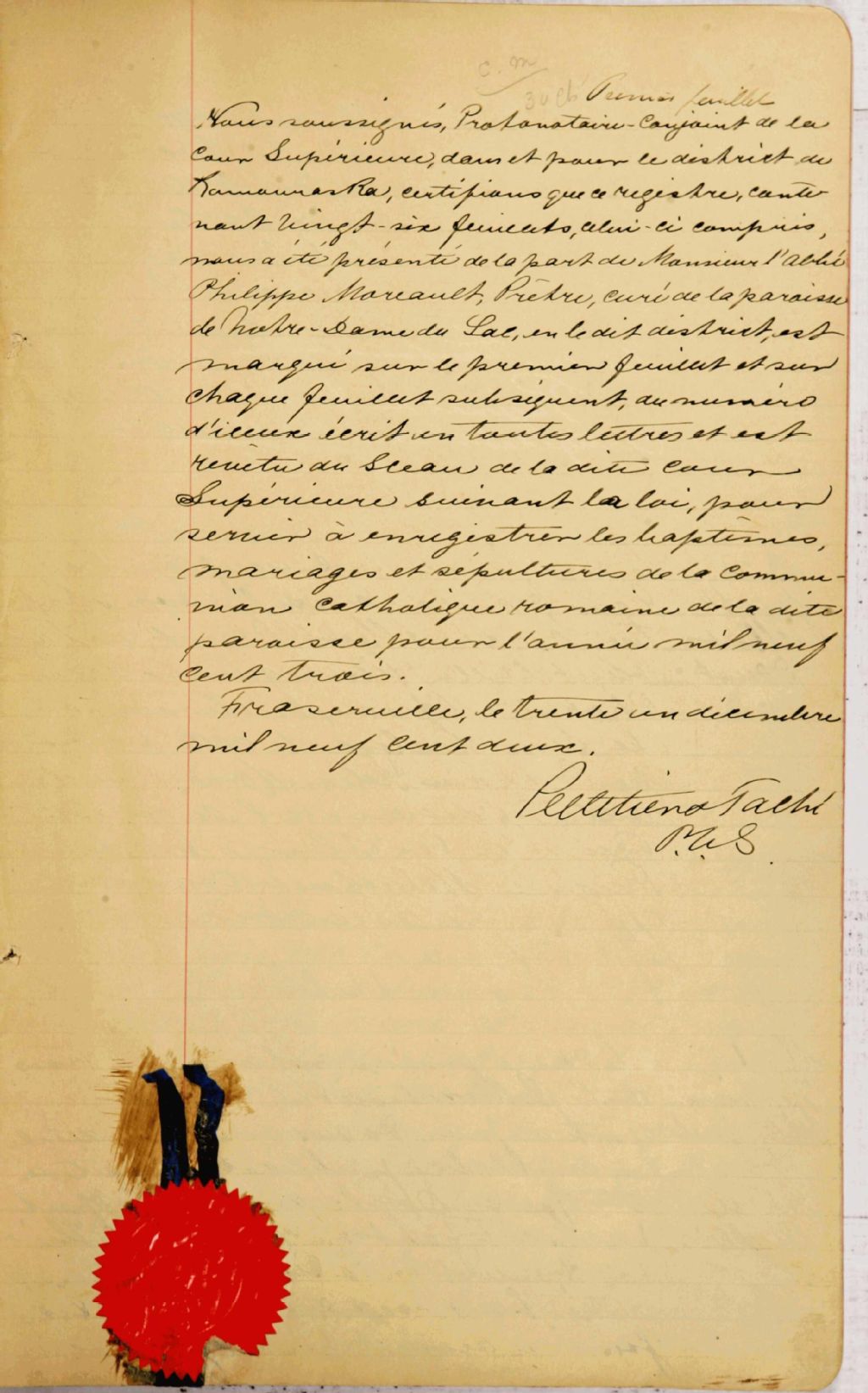 Notre-Dame-du-Lac, 1862-1921, Archives nationales à Rimouski, Fonds Cour supérieure. District judiciaire de Kamouraska. État civil, (01R,CE104,S9).
