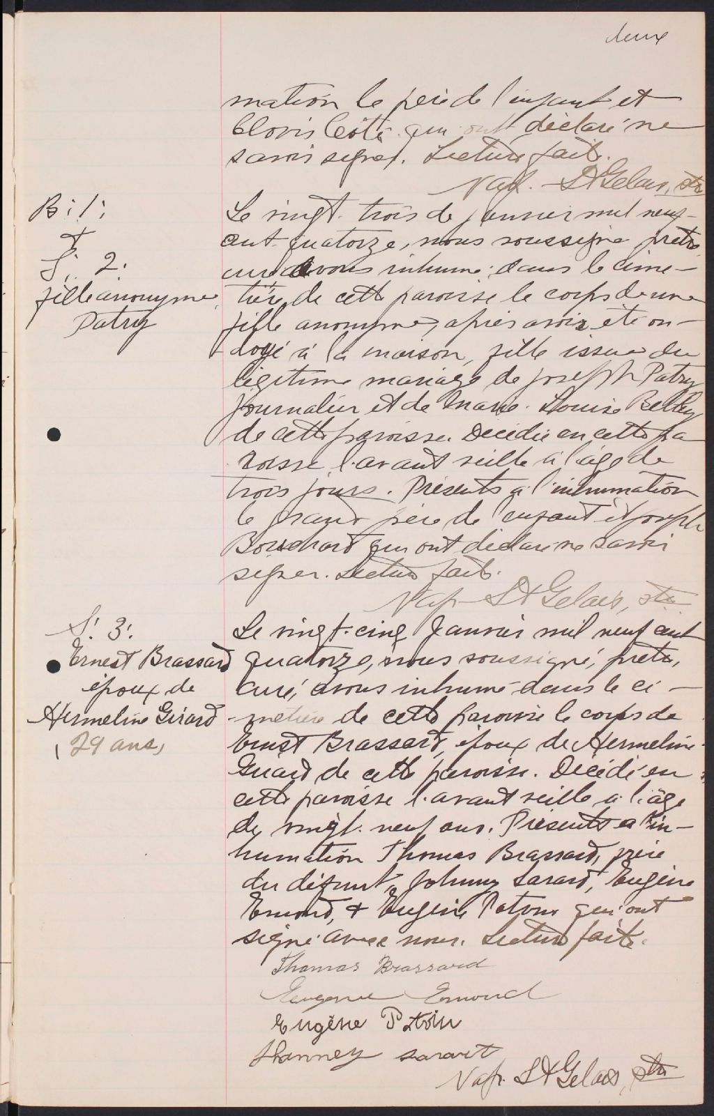 - Cette série regroupe les registres originaux de l'état civil, lesquels contiennent les enregistrements de baptêmes, de mariages et de sépultures consignés par le curé ou son représentant au cours de la période concernée par les documentsOutre les renseignements à caractère généalogique que nous pouvons y puiser, cette série peut constituer une source documentaire importante pour toute étude-statistique ou comparative sur les conditions de vie à différentes époques (mortalité infantile, espérance de vie) ou pour toute recherche portant sur l'occupation des terres (lieu de résidence), sur le mode vie (métiers et professions, statut et âge des époux), sur les classes sociales (titres des parties impliquées, témoins/amis/parents présents lors du mariage), sur des événements spéciaux (quelques mentions dans les sépultures) et sur des sujets à incidence médicale tels les maladies héréditaires (cause du décès)