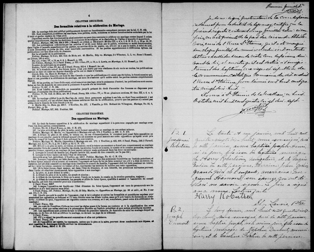 - Cette série regroupe les registres originaux de l'état civil, lesquels contiennent les enregistrements de baptêmes, de mariages et de sépultures consignés par le curé ou son représentant au cours de la période concernée par les documentsOutre les renseignements à caractère généalogique que nous pouvons y puiser, cette série peut constituer une source documentaire importante pour toute étude-statistique ou comparative sur les conditions de vie à différentes époques (mortalité infantile, espérance de vie) ou pour toute recherche portant sur l'occupation des terres (lieu de résidence), sur le mode vie (métiers et professions, statut et âge des époux), sur les classes sociales (titres des parties impliquées, témoins/amis/parents présents lors du mariage), sur des événements spéciaux (quelques mentions dans les sépultures) et sur des sujets à incidence médicale tels les maladies héréditaires (cause du décès)