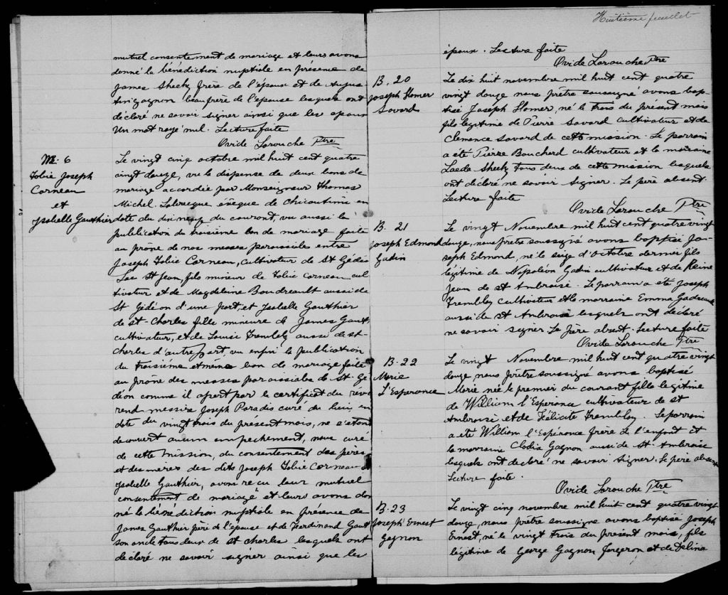 Saint-Charles-Borromée, 1885-1922, Archives nationales à Saguenay, Fonds Cour supérieure. District judiciaire de Chicoutimi. Etat civil, (02C,CE201,S17).