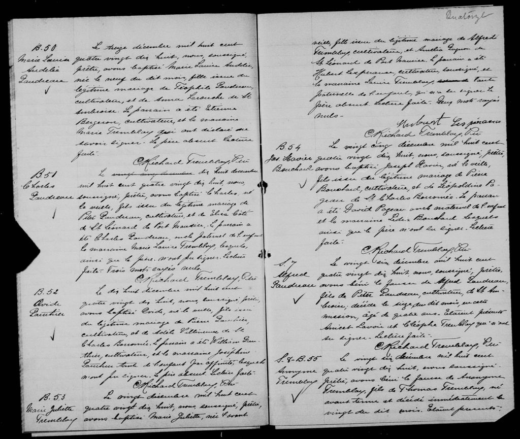 Saint-Charles-Borromée, 1885-1922, Archives nationales à Saguenay, Fonds Cour supérieure. District judiciaire de Chicoutimi. Etat civil, (02C,CE201,S17).