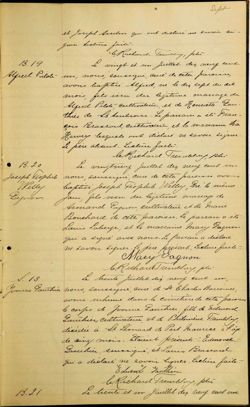 Saint-Charles-Borromée, 1885-1922, Archives nationales à Saguenay, Fonds Cour supérieure. District judiciaire de Chicoutimi. Etat civil, (02C,CE201,S17).