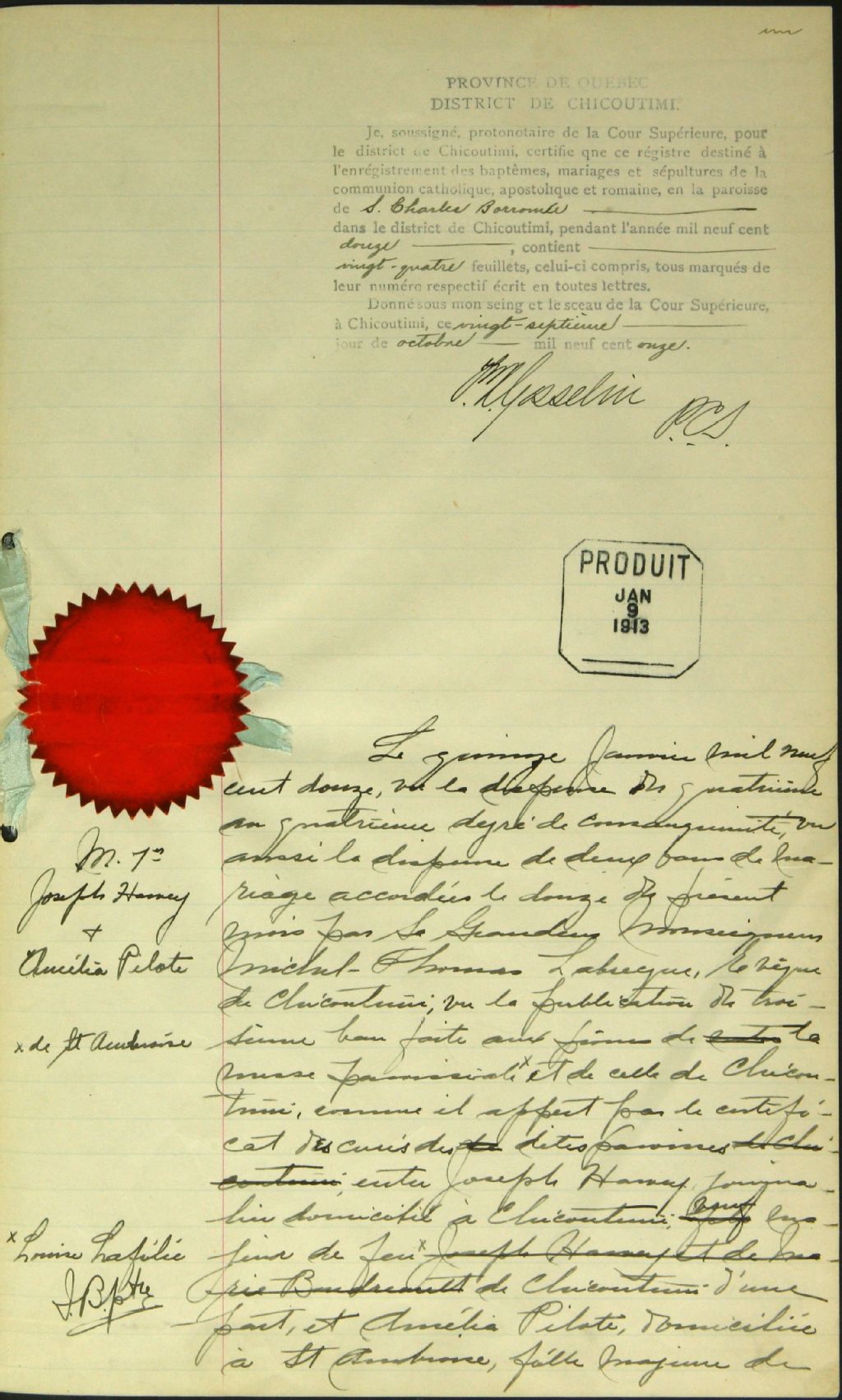 Saint-Charles-Borromée, 1885-1922, Archives nationales à Saguenay, Fonds Cour supérieure. District judiciaire de Chicoutimi. Etat civil, (02C,CE201,S17).