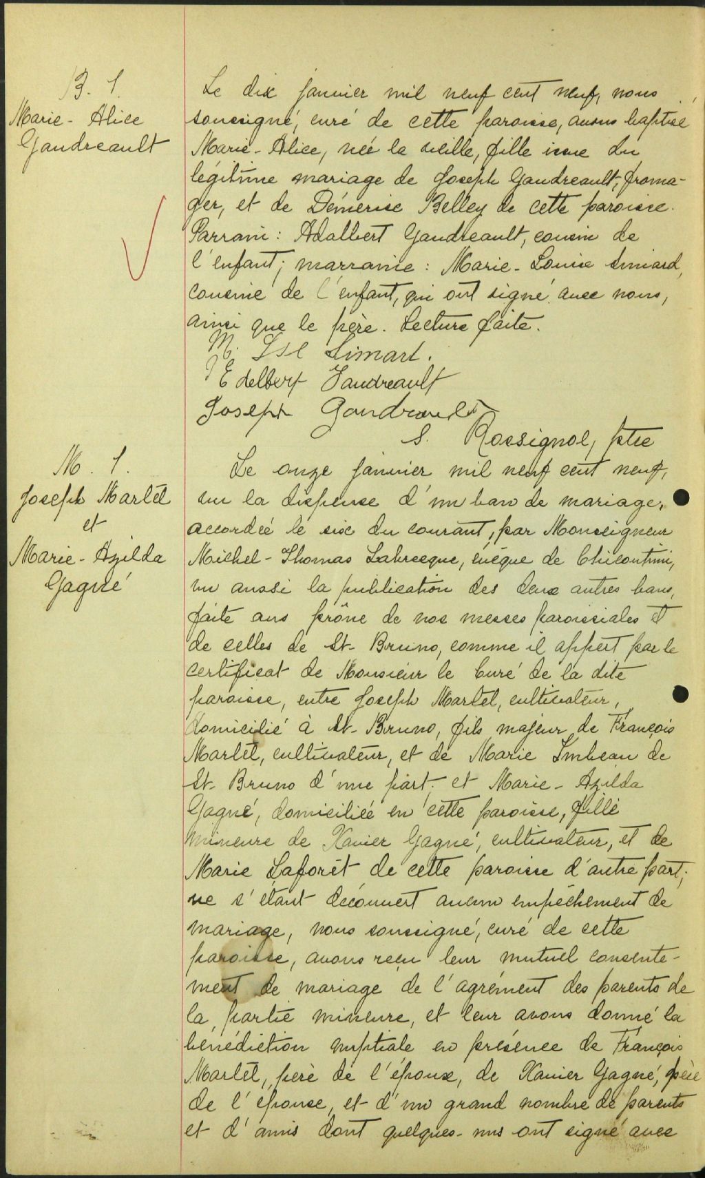 - Cette série regroupe les registres originaux de l'état civil, lesquels contiennent les enregistrements de baptêmes, de mariages et de sépultures consignés par le curé ou son représentant au cours de la période concernée par les documents.Outre les renseignements à caractère généalogique que nous pouvons y puiser, cette série peut constituer une source documentaire importante pour toute étude-statistique ou comparative sur les conditions de vie à différentes époques (mortalité infantile, espérance de vie) ou pour toute recherche portant sur l'occupation des terres (lieu de résidence), sur le mode vie (métiers et professions, statut et âge des époux), sur les classes sociales (titres des parties impliquées, témoins/amis/parents présents lors du mariage), sur des événements spéciaux (quelques mentions dans les sépultures) et sur des sujets à incidence médicale tels les maladies héréditaires (cause du décès)