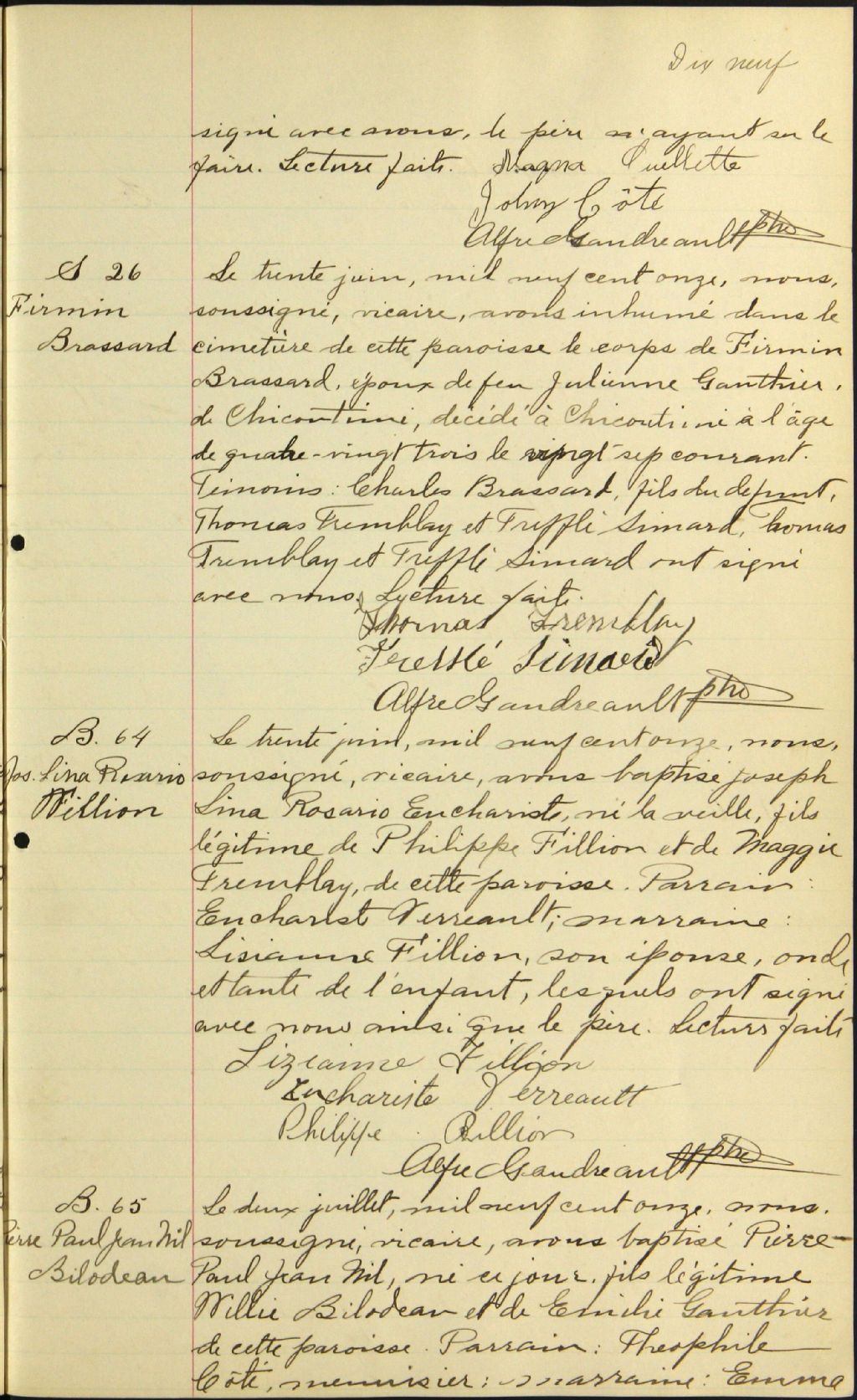 - Cette série regroupe les registres originaux de l'état civil, lesquels contiennent les enregistrements de baptêmes, de mariages et de sépultures consignés par le curé ou son représentant au cours de la période concernée par les documents. Pour la période 1860 à 1876 nous disposons également d'une copie sur bobines de microfilm, des registres conservés dans les paroisses. De plus, sur ces mêmes bobines sont inclus les registres de confirmations pour les années 1868 et 1874.Outre les renseignements à caractère généalogique que nous pouvons y puiser, cette série peut constituer une source documentaire importante pour toute étude-statistique ou comparative sur les conditions de vie à différentes époques (mortalité infantile, espérance de vie) ou pour toute recherche portant sur l'occupation des terres (lieu de résidence), sur le mode vie (métiers et professions, statut et âge des époux), sur les classes sociales (titres des parties impliquées, témoins/amis/parents présents lors du mariage), sur des événements spéciaux (quelques mentions dans les sépultures) et sur des sujets à incidence médicale tels les maladies héréditaires (cause du décès)