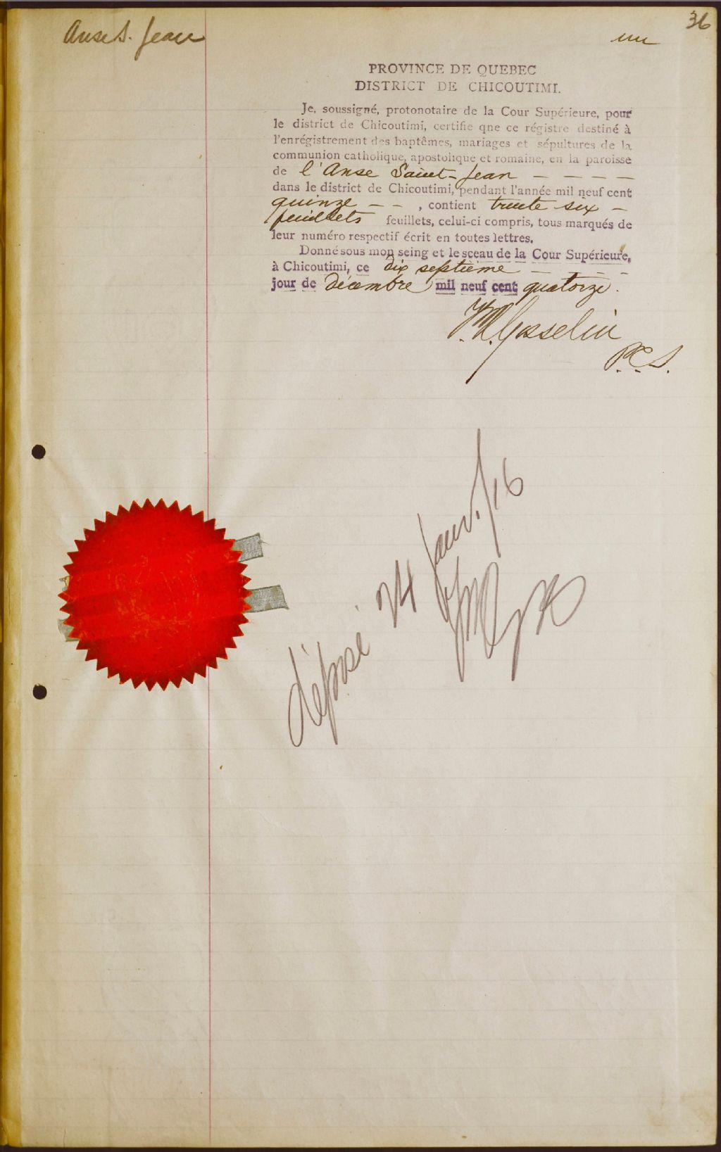 Saint-Jean-Baptiste-de-l'Anse-Saint-Jean, 1861-1922, Archives nationales à Saguenay, Fonds Cour supérieure. District judiciaire de Chicoutimi. Etat civil, (02C,CE201,S6).
