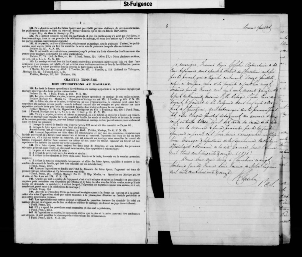 - Cette série regroupe les registres originaux de l'état civil, lesquels contiennent les enregistrements de baptêmes, de mariages et de sépultures consignés par le curé ou son représentant au cours de la période concernée par les documents. Pour la période 1871 à 1876 nous disposons également d'une copie sur bobines de microfilm, des registres conservés dans les paroisses.Outre les renseignements à caractère généalogique que nous pouvons y puiser, cette série peut constituer une source documentaire importante pour toute étude-statistique ou comparative sur les conditions de vie à différentes époques (mortalité infantile, espérance de vie) ou pour toute recherche portant sur l'occupation des terres (lieu de résidence), sur le mode vie (métiers et professions, statut et âge des époux), sur les classes sociales (titres des parties impliquées, témoins/amis/parents présents lors du mariage), sur des événements spéciaux (quelques mentions dans les sépultures) et sur des sujets à incidence médicale tels les maladies héréditaires (cause du décès)