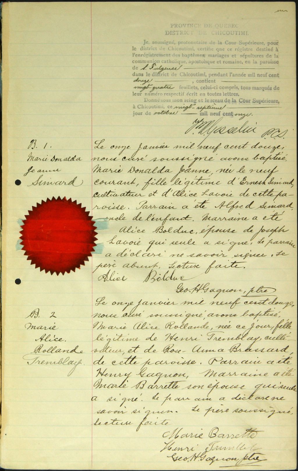 Saint-Fulgence, 1871-1922, Archives nationales à Saguenay, Fonds Cour supérieure. District judiciaire de Chicoutimi. Etat civil, (02C,CE201,S8).