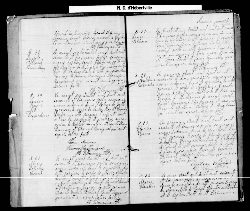 - Cette série regroupe les registres originaux de l'état civil, lesquels contiennent les enregistrements de baptêmes, de mariages et de sépultures consignés par le curé ou son représentant au cours de la période concernée par les documents.Outre les renseignements à caractère généalogique que nous pouvons y puiser, cette série peut constituer une source documentaire importante pour toute étude-statistique ou comparative sur les conditions de vie à différentes époques (mortalité infantile, espérance de vie) ou pour toute recherche portant sur l'occupation des terres (lieu de résidence), sur le mode vie (métiers et professions, statut et âge des époux), sur les classes sociales (titres des parties impliquées, témoins/amis/parents présents lors du mariage), sur des événements spéciaux (quelques mentions dans les sépultures) et sur des sujets à incidence médicale tels les maladies héréditaires (cause du décès)
