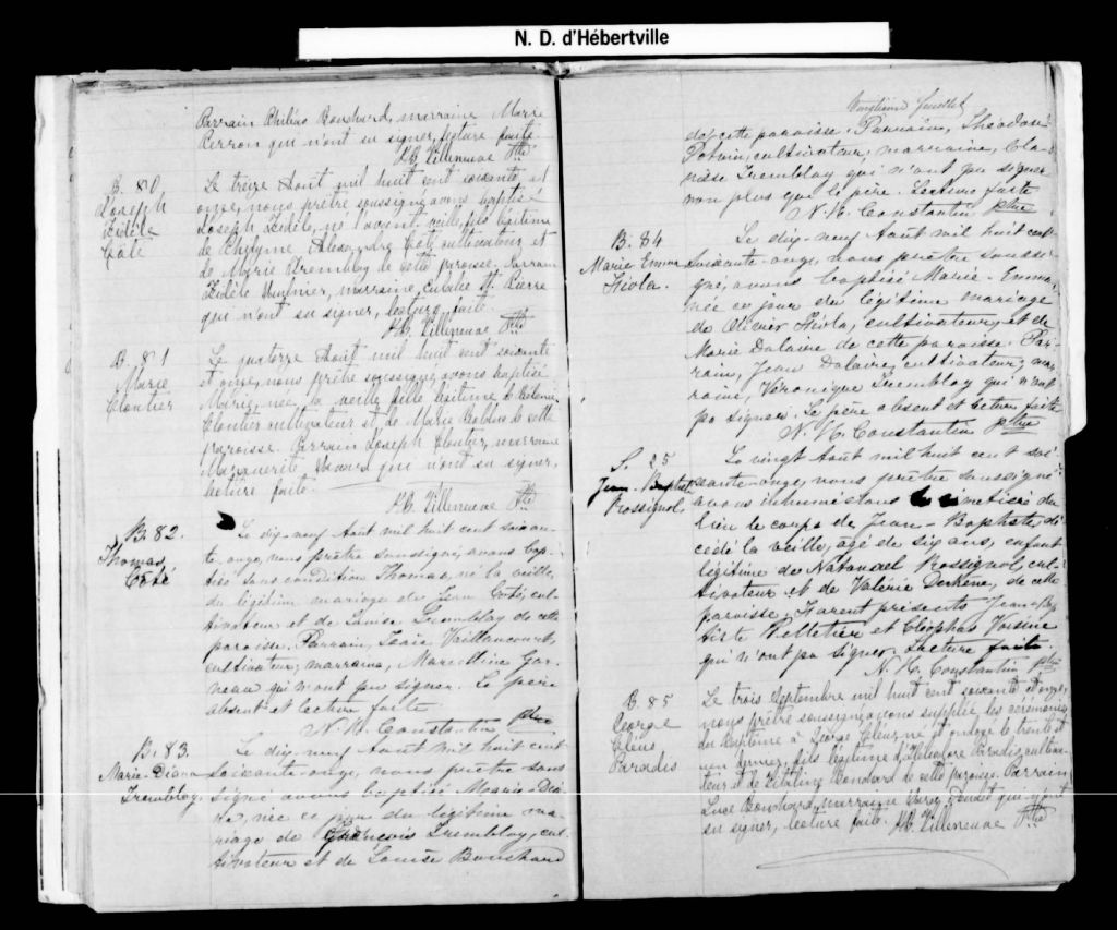 - Cette série regroupe les registres originaux de l'état civil, lesquels contiennent les enregistrements de baptêmes, de mariages et de sépultures consignés par le curé ou son représentant au cours de la période concernée par les documents.Outre les renseignements à caractère généalogique que nous pouvons y puiser, cette série peut constituer une source documentaire importante pour toute étude-statistique ou comparative sur les conditions de vie à différentes époques (mortalité infantile, espérance de vie) ou pour toute recherche portant sur l'occupation des terres (lieu de résidence), sur le mode vie (métiers et professions, statut et âge des époux), sur les classes sociales (titres des parties impliquées, témoins/amis/parents présents lors du mariage), sur des événements spéciaux (quelques mentions dans les sépultures) et sur des sujets à incidence médicale tels les maladies héréditaires (cause du décès)
