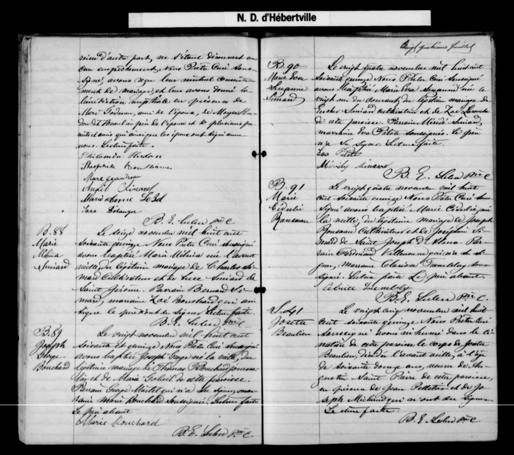 - Cette série regroupe les registres originaux de l'état civil, lesquels contiennent les enregistrements de baptêmes, de mariages et de sépultures consignés par le curé ou son représentant au cours de la période concernée par les documents.Outre les renseignements à caractère généalogique que nous pouvons y puiser, cette série peut constituer une source documentaire importante pour toute étude-statistique ou comparative sur les conditions de vie à différentes époques (mortalité infantile, espérance de vie) ou pour toute recherche portant sur l'occupation des terres (lieu de résidence), sur le mode vie (métiers et professions, statut et âge des époux), sur les classes sociales (titres des parties impliquées, témoins/amis/parents présents lors du mariage), sur des événements spéciaux (quelques mentions dans les sépultures) et sur des sujets à incidence médicale tels les maladies héréditaires (cause du décès)