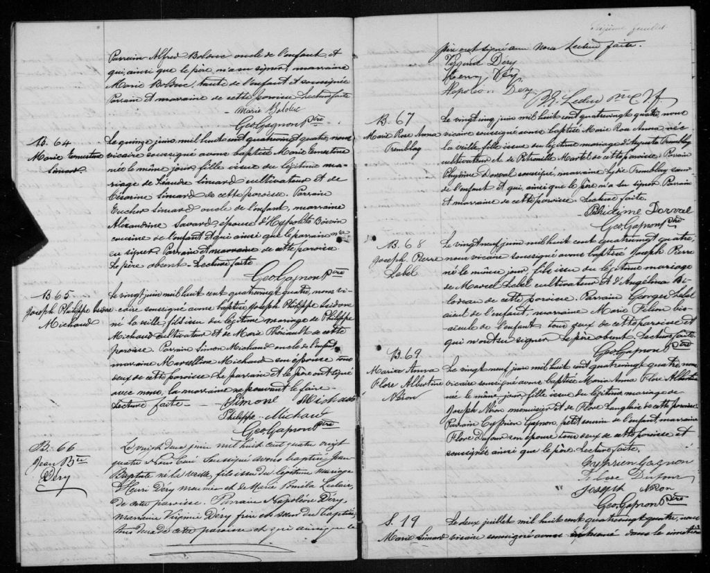 - Cette série regroupe les registres originaux de l'état civil, lesquels contiennent les enregistrements de baptêmes, de mariages et de sépultures consignés par le curé ou son représentant au cours de la période concernée par les documents.Outre les renseignements à caractère généalogique que nous pouvons y puiser, cette série peut constituer une source documentaire importante pour toute étude-statistique ou comparative sur les conditions de vie à différentes époques (mortalité infantile, espérance de vie) ou pour toute recherche portant sur l'occupation des terres (lieu de résidence), sur le mode vie (métiers et professions, statut et âge des époux), sur les classes sociales (titres des parties impliquées, témoins/amis/parents présents lors du mariage), sur des événements spéciaux (quelques mentions dans les sépultures) et sur des sujets à incidence médicale tels les maladies héréditaires (cause du décès)